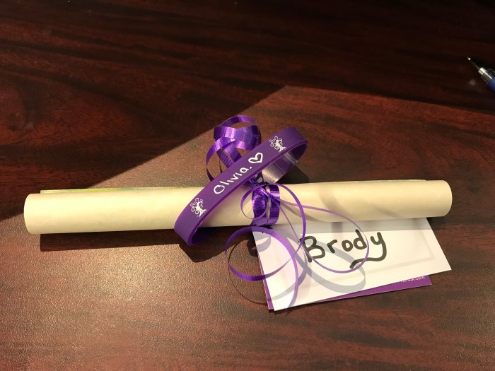Congratulations Brody as you go on your next journey. You are exactly who Olivia would have wanted in a friend. We look forward to hearing of your future success 😊